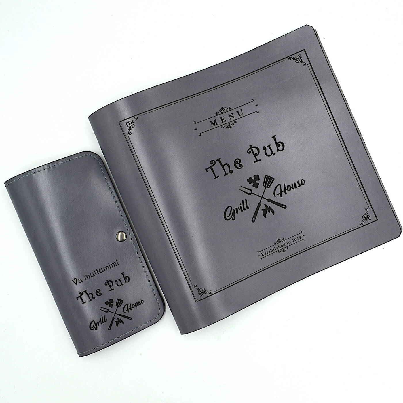 In plus, atelierul nostru poate oferi servicii de personalizare a meniurilor si a notelor de plata in functie de preferintele clientilor, inclusiv alegerea pielii, culorilor si texturilor, precum si tiparirea logo-ului sau a mesajului dorit.