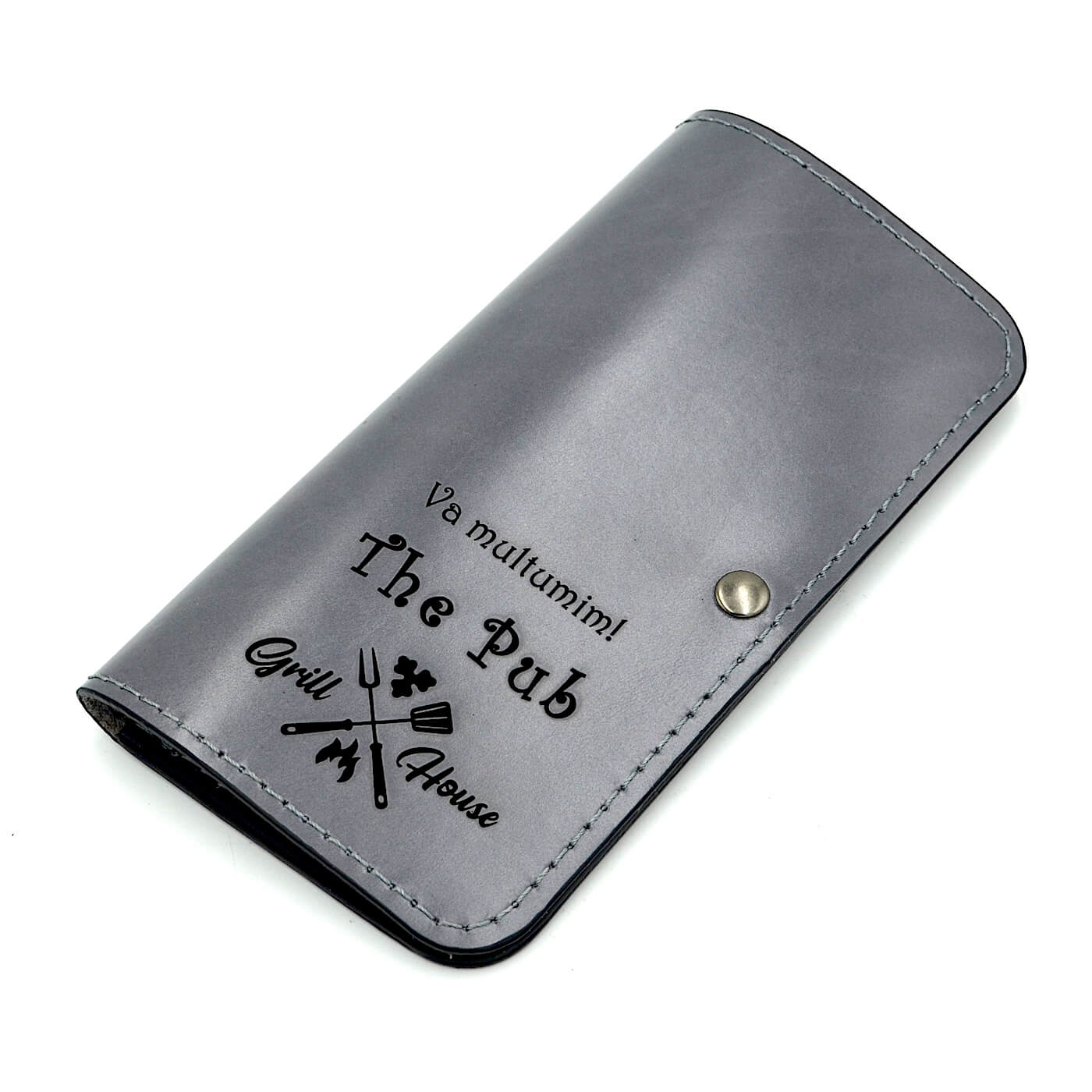 Restaurant menu folder, A4, made of natural leather, engraved with logo