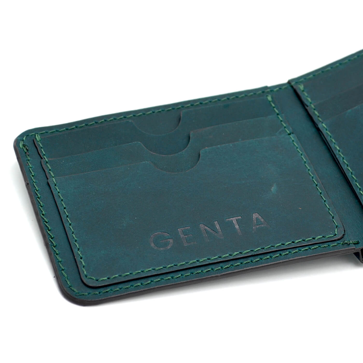 1 buzunar bancnote, 1 slot CI, 6 buzunare carduri |