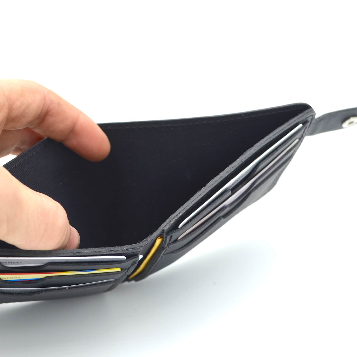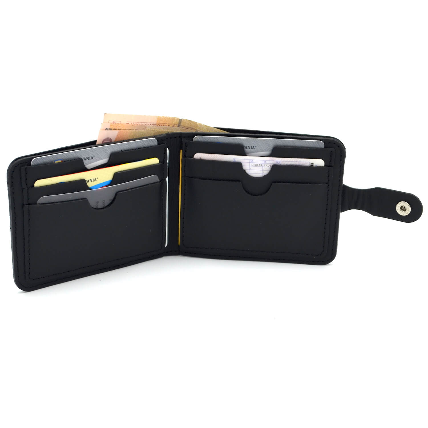 1 buzunar bancnote, 2 sloturi CI, 6 buzunare carduri
