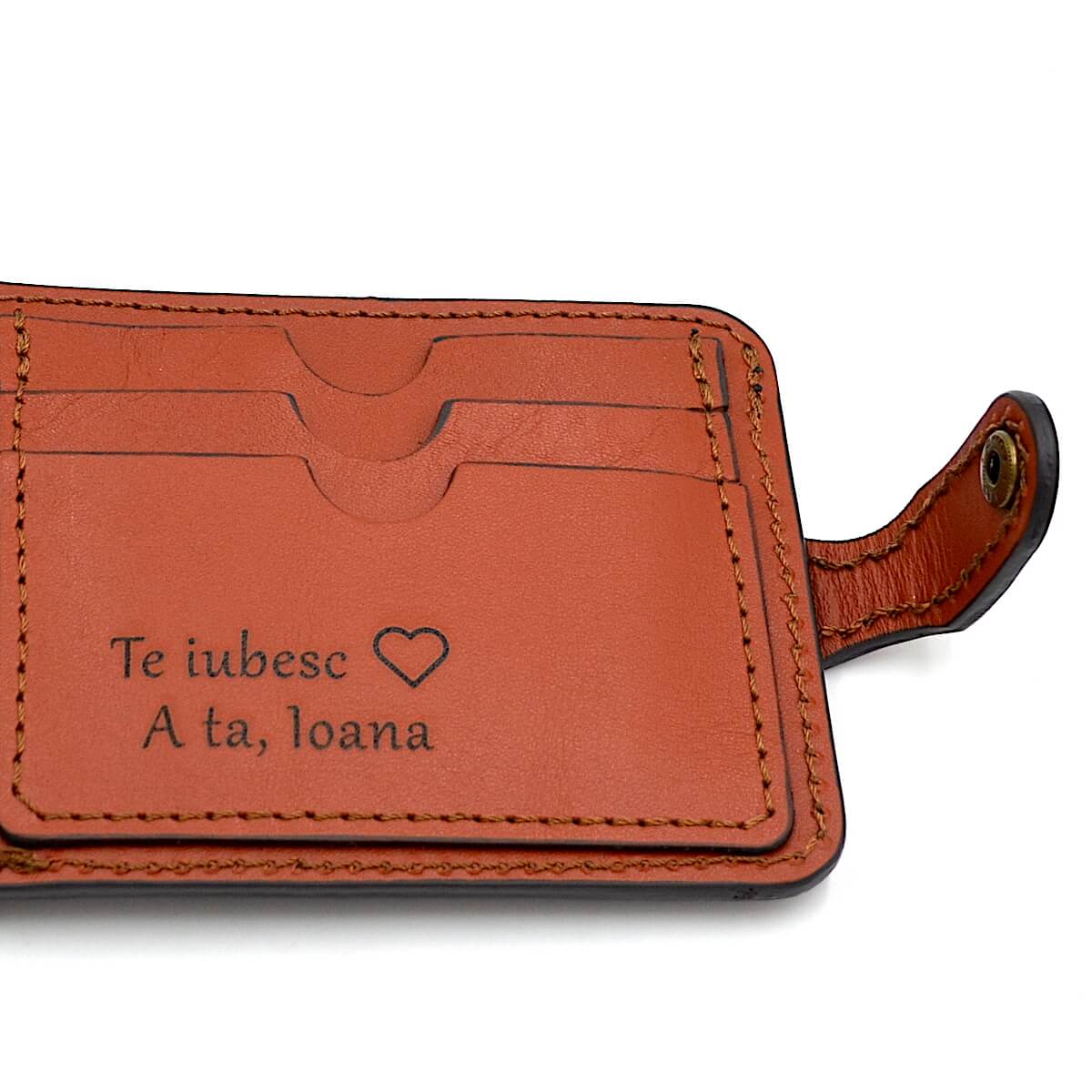 portofel barbati maro coniac piele personalizat text