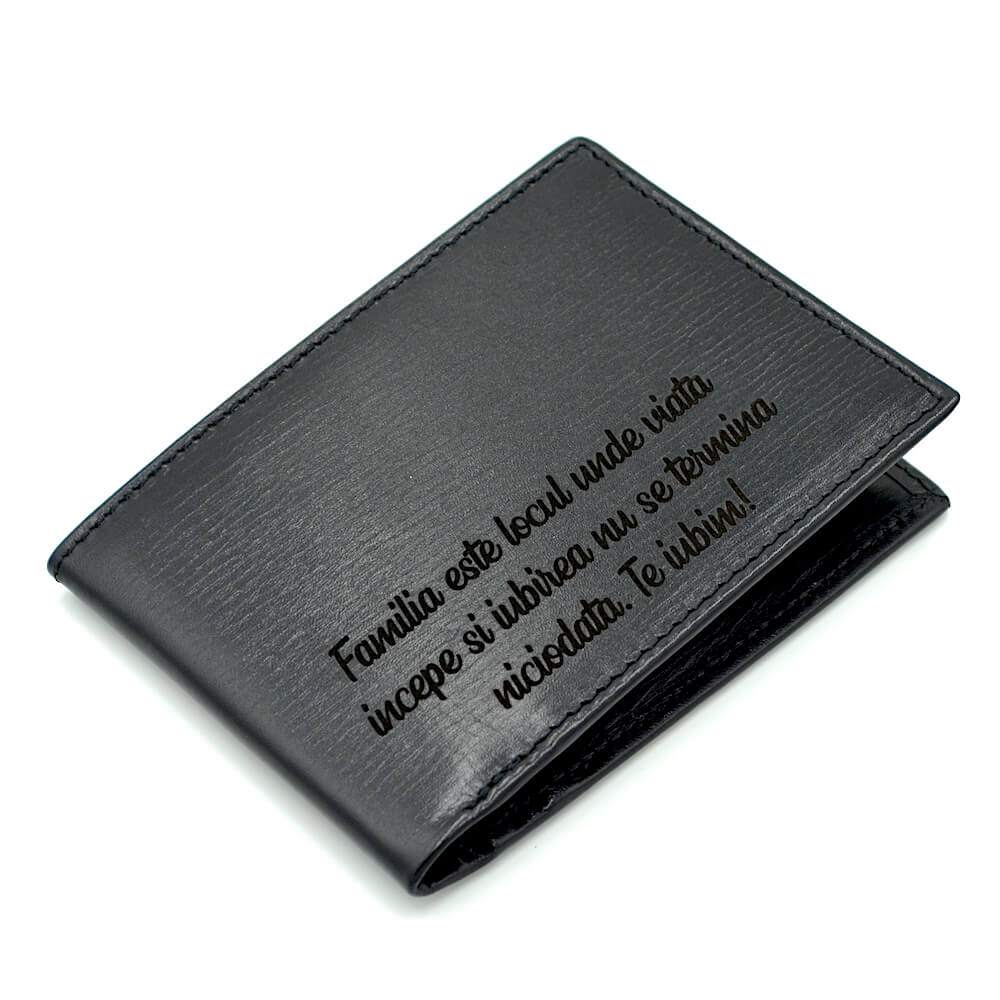 4 buzunare dimensiunea CI, imagine personalizata glob, text mesaj personalizat, un buzunar exterior ideal pentru acte masina/buletin |
